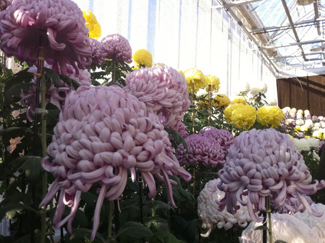We went to the New York Botanical Gardens this weekend to enjoy the perfect Fall weather and to help induce labor from all the trail walking (an unsuccessful attempt). On the way there, Stella tells us about a story read in her class about this little mouse named Chrysanthemum and how she is made fun of by the other mice in her school because her name is so long and hard to say. Her feelings get hurt and she wants to change her name to something short and plain. Anyway, I thought it was a really cute story and Stella retold it very well. The funny thing is while we were walking around the garden, we came across an exhibit in one of the greenhouses of chrysanthemums varieties. We had no idea it was there. Stella was quite amused.