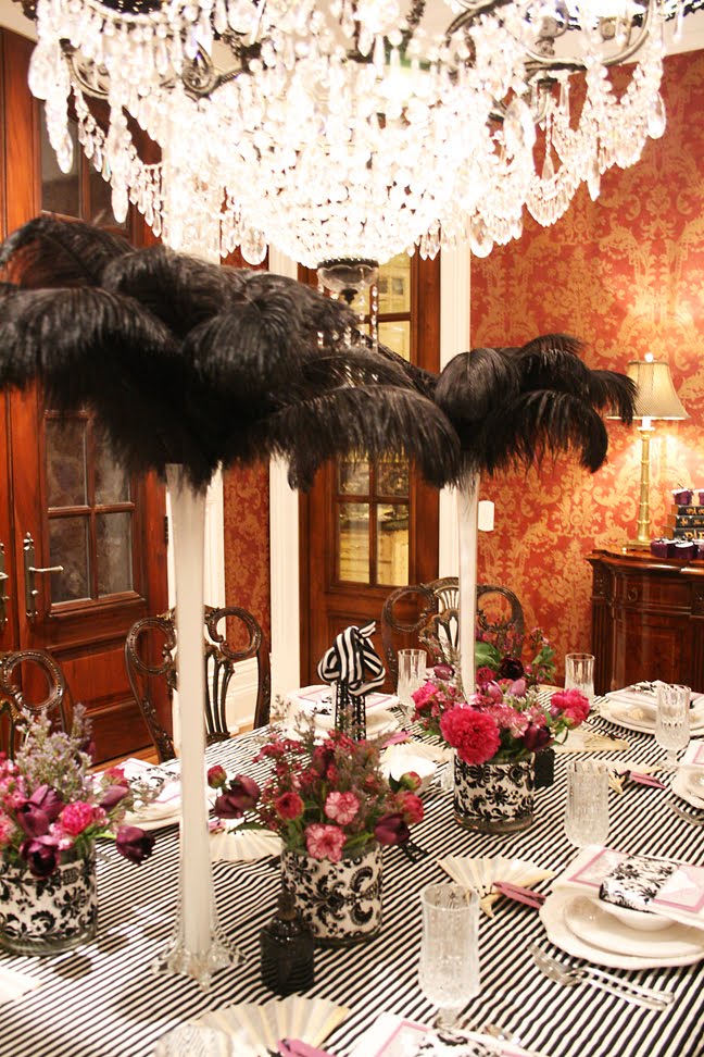 Feather centerpieces gave a little burlesque drama–I was definitely thinking Moulin Rouge and Cabaret.
