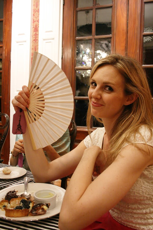 All the girls received white silk fans with an eiffel tower tag and french macaroons as party favors.