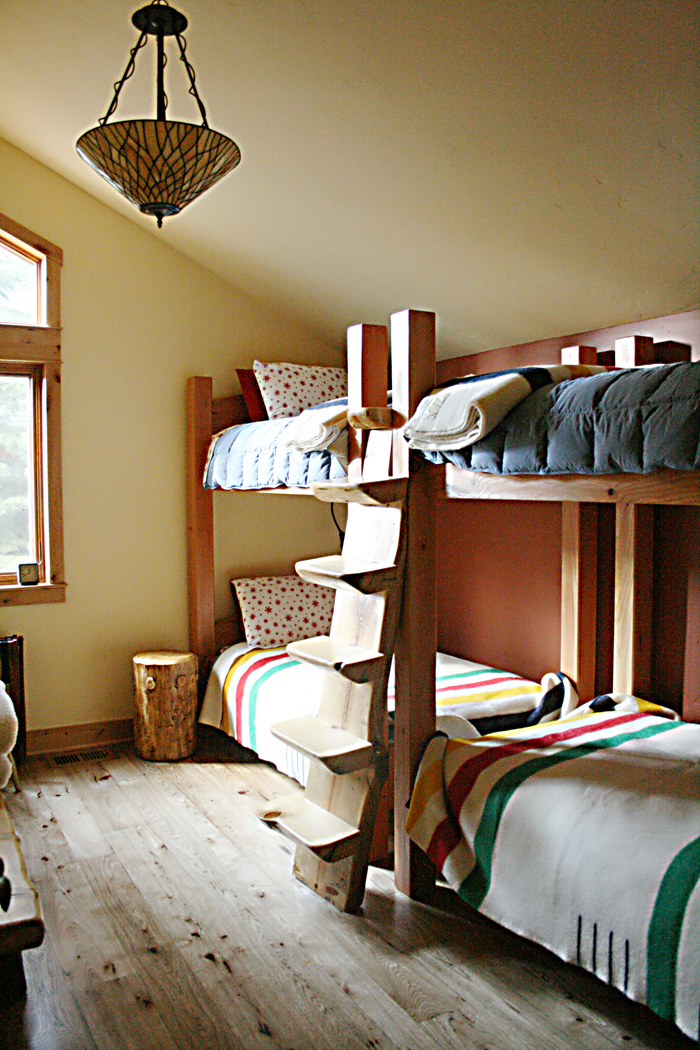 Most of the cabin’s furniture and built-ins were handmade with wood from the property. Modern technology and heated floors made the cabin feel like a home.