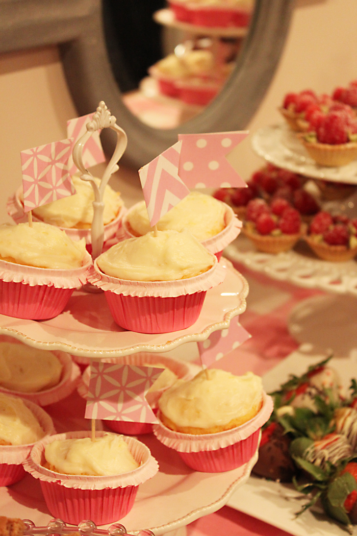 For dessert we did cupcakes, raspberry tartlets, brownies and chocolate-covered strawberries. Simple and nothing too much.