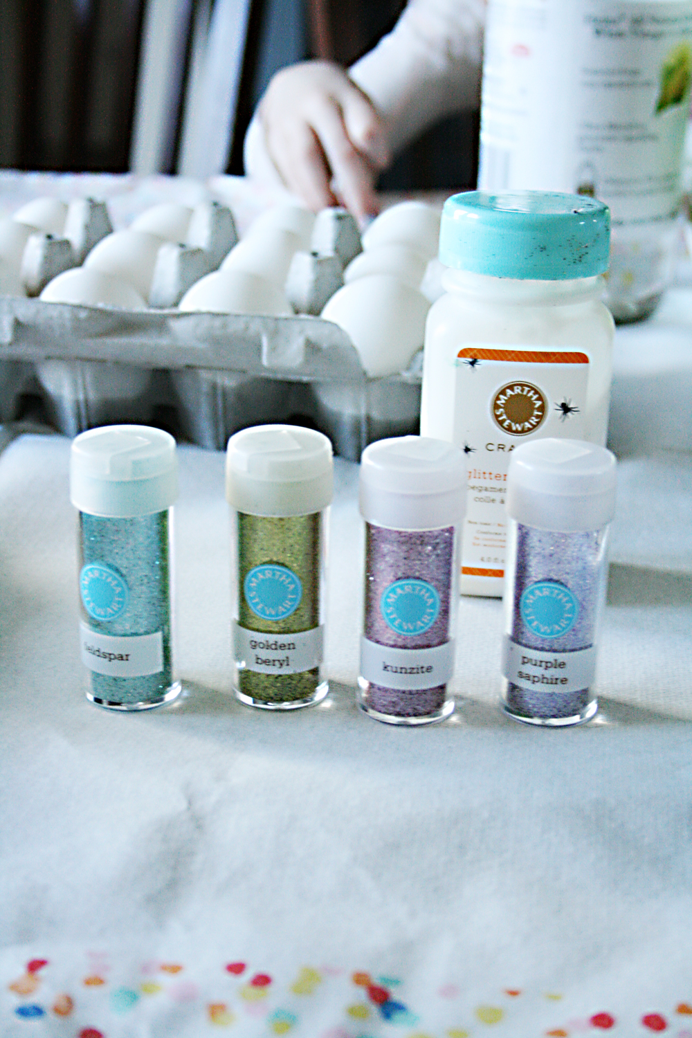 Easter egg decorating time was at our house this past Monday. You should of stop by! It was quite fun. We decided to get a little more technical this year and introduce other egg decorating techniques in addition to the color bath. I lined the table and set up four egg decorating stations on the table: melted crayon, tie-dye, glitter and color bath. The kids rotated between each station, decorating a few eggs per station. I put the instructions to each egg decorating technique below.