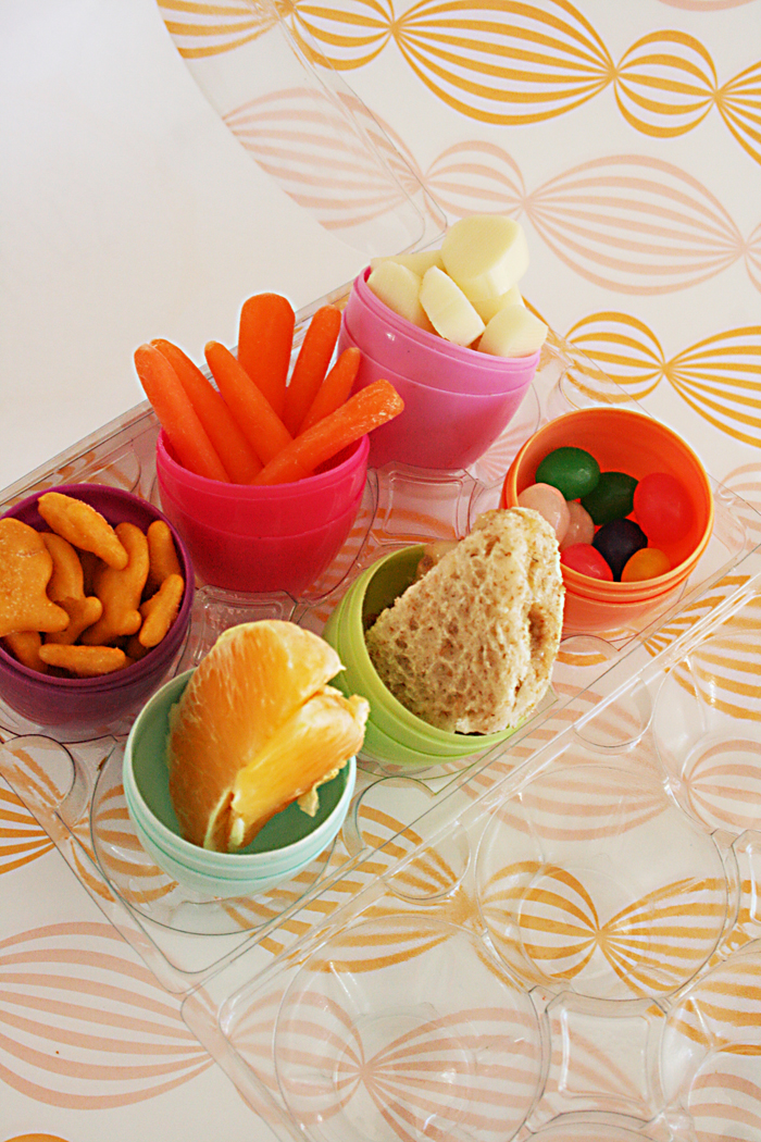 The weather was perfect springtime during the Easter weekend that we got a little creative with Easter lunch and had an Easter picnic in an egg. I bought organic eggs in the plastic egg carton and saved the cartons to use for our picnic. Then I filled plastic eggs with finger foods and placed in the carton. My kids got a kick out of these Easter picnic cartons that we had to have a picnic a few times. Each egg was a healthy surprise.