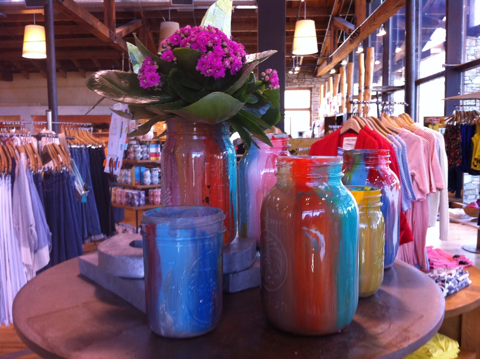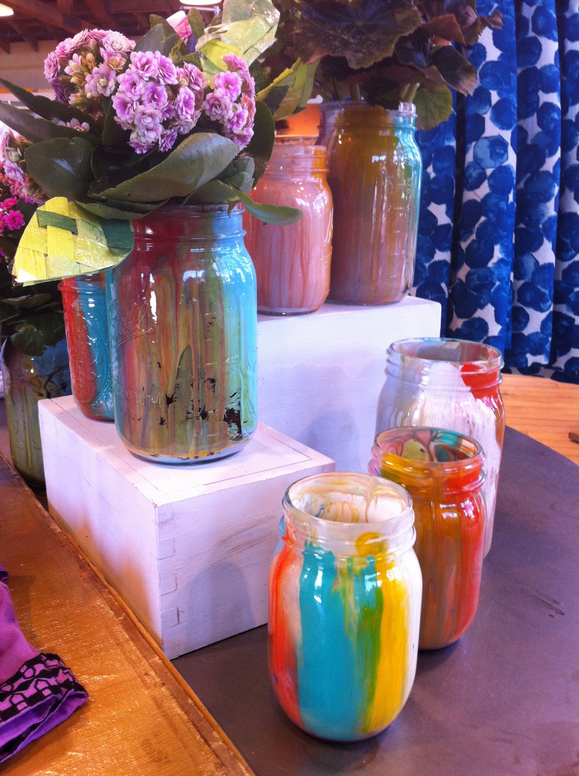 I saw the idea at Anthropologie as a flower display and loved the collection of painted jars. (They always have the best art project ideas…huh).