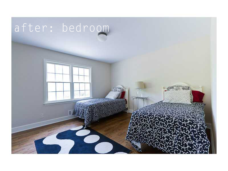 It’s amazing how a bucket of white paint and new flooring can transform a home needing major renovations. This mid-century ranch is a house we saw on one of our house-hunting rounds and has many things that I love–natural light, hardwoods, good space, white kitchen. Our realtor told us it was recently renovated, so we asked her to send us an old listing of the house with pictures so we could get a comparision of what had been done. We were impressed by the transformation. Too bad we have two kids too much for the house!