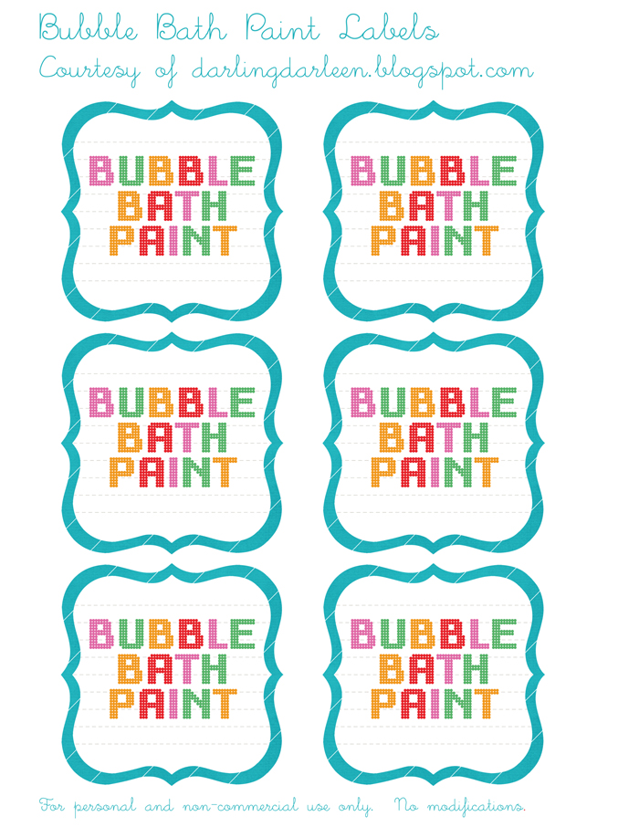 This is a tutorial making bubble bath paint. One of the traditions we started a few years ago for Christmas is homemade sibling gifts. My kids have really enjoyed this idea and love making and giving their creations to their brother and sister. They take great pride once their present to give is completed. This past year, Jackson made homemade bubble bath paint for each of his siblings. Thanks for Pinterest for providing the idea. Here’s the link to the recipe and step-by-step instructions. My kids loved this gift! I got all the craft supplies from Hobby Lobby and made up some bubble bath labels. I thought this would be a great party favor idea for a bubble birthday. So below is the FREE download for the labels.