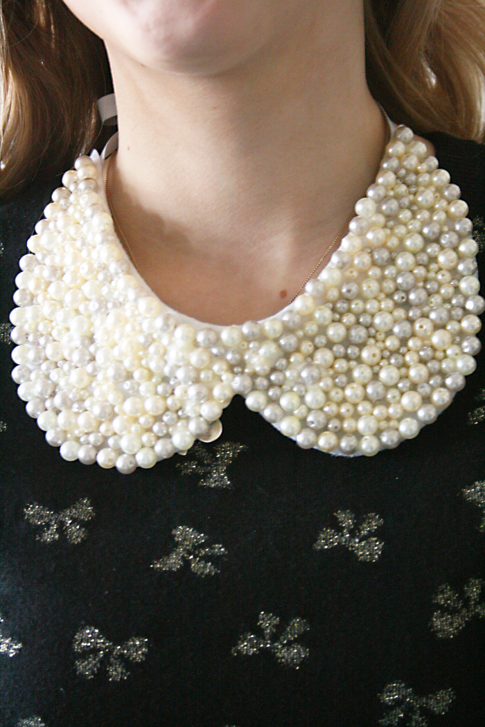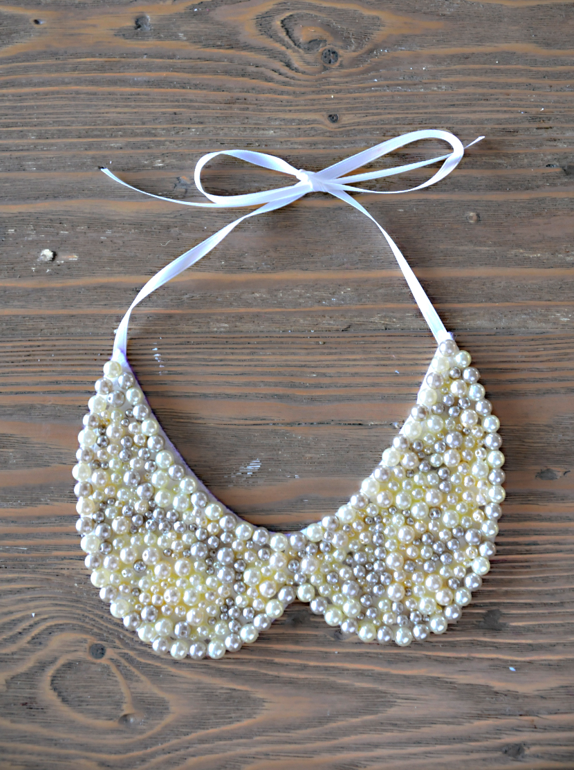 A favorite style to wear right now is peter pan collar necklaces. It a charming detail that makes any blouse stunning. There are many ways you can make a peter pan collar, but this tutorial is for a detachable pearl peter pan necklace. I love the versatility of this necklace. Dress it up with a blouse or wear with a white tshirt and jeans. Very cute and trendy!