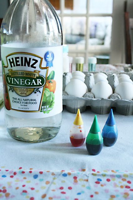 Easter egg decorating time was at our house this past Monday. You should of stop by! It was quite fun. We decided to get a little more technical this year and introduce other egg decorating techniques in addition to the color bath. I lined the table and set up four egg decorating stations on the table: melted crayon, tie-dye, glitter and color bath. The kids rotated between each station, decorating a few eggs per station. I put the instructions to each egg decorating technique below.