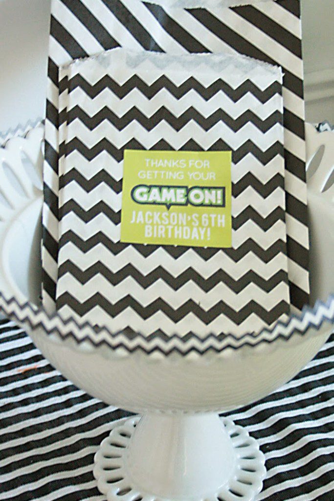 For my son’s 6th birthday, he wanted to make it a Minecraft theme but to keep it more generalized I convinced him to have a video game birthday party and used the Minecraft colors. We had such a great time at his party and most of the neighbor boys came over after they saw the video game truck parked in front of our house. I think boy’s birthday parties are so fun to plan, and they get so excited from all the decorations and goodies! After setting up, the party was pretty low key, and I was able to sit back and relax because the kids just played videos in the game truck the entire time and then would come inside to refuel with food and drinks, but then headed right back out to continue to play. Resources are listed below:
