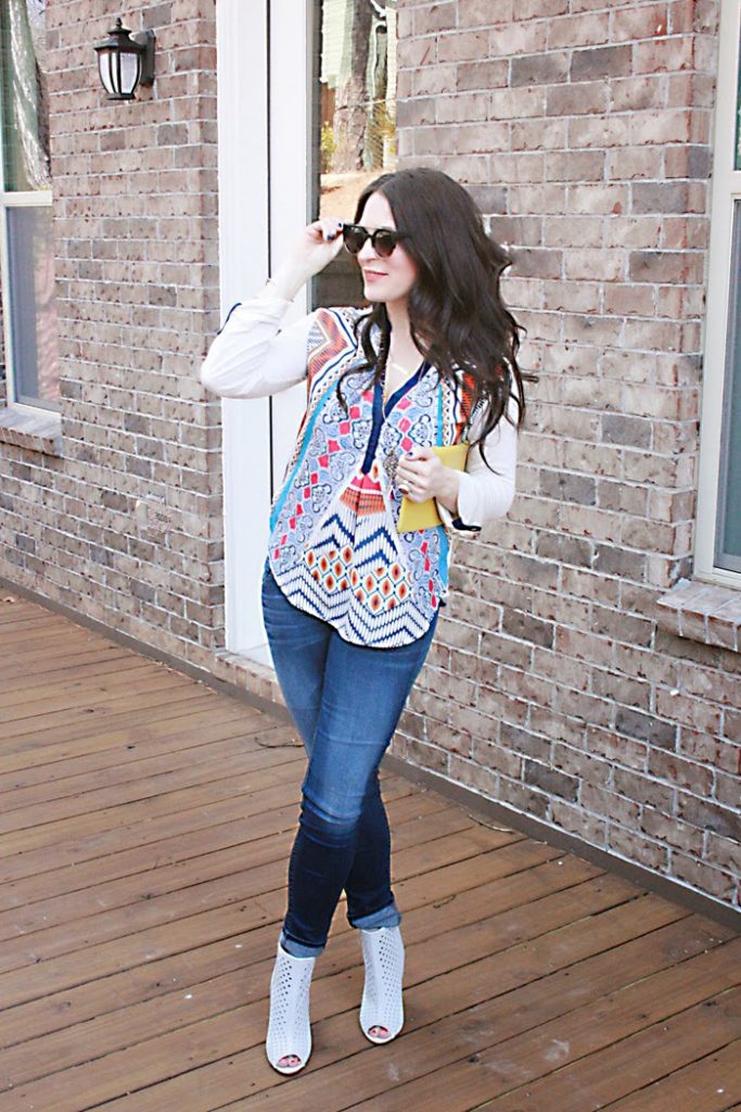 I’m a hippie at heart, and always love bohemian style. I use to own five birkenstocks…at once! You can never go wrong with a breezy, gauzy peasant top especially during spring. It will keep you cool but add a light layer to keep the warmth in. And as you can see I am drawn to aztec prints.