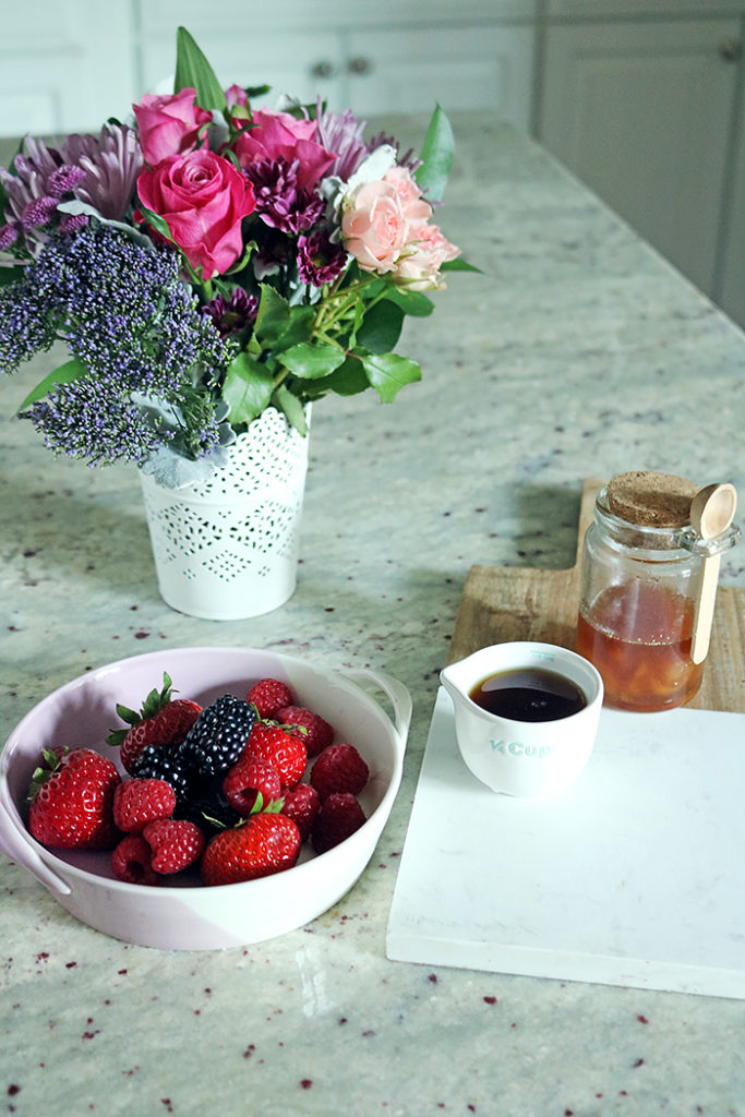 - Unsweetened plain greek yogurt with fruit and topped with maple syrup and sprinkled with no-sugar granola.
